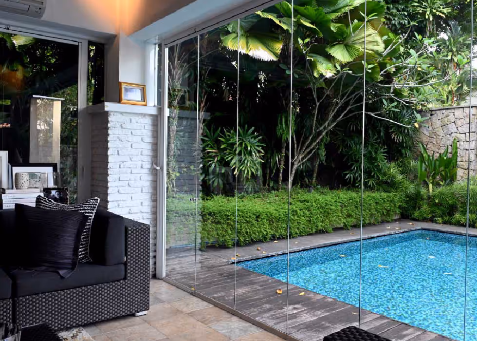 Direct from Europe, Glass Curtains® are frameless, noise-reducing, tempered glass panels for your home, office or shopfront. They can create a safe and peaceful place for you to relax while keeping out the rain, dust, haze, flying pests, and outside noise.