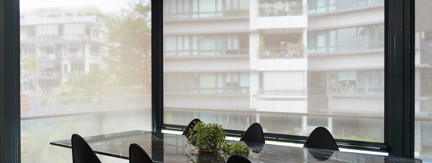 Ziptrak® blinds with acoustic fabrics can create a noise-reduction layer between outdoor noise and interior windows. With their sealed track system, they can reduce traffic sounds, construction noise, loud voices, and ambient street sounds.