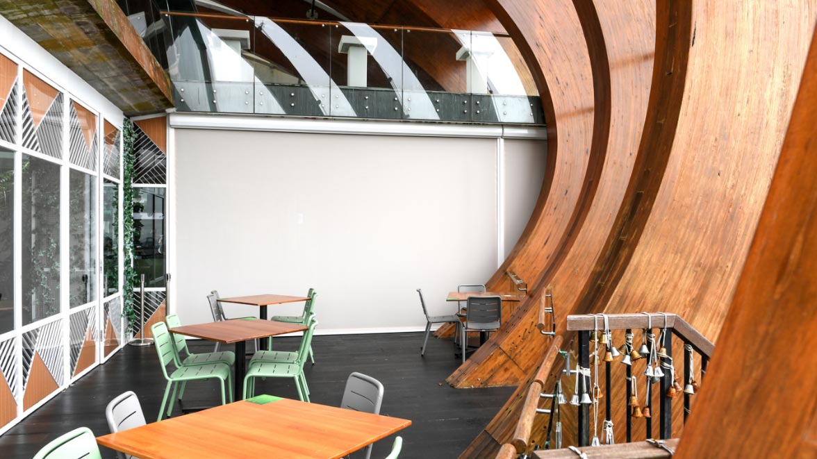 As a popular wedding spot, Arbora Restaurant offers an intimate, romantic setting on the top of Mt Faber. While it was important to offer sun and rain protection to its guests, the last thing the management of the restaurant wanted was to have vertical posts right where wedding couples were to make their entrance from a beautiful, floral-clad stairway into the restaurant.