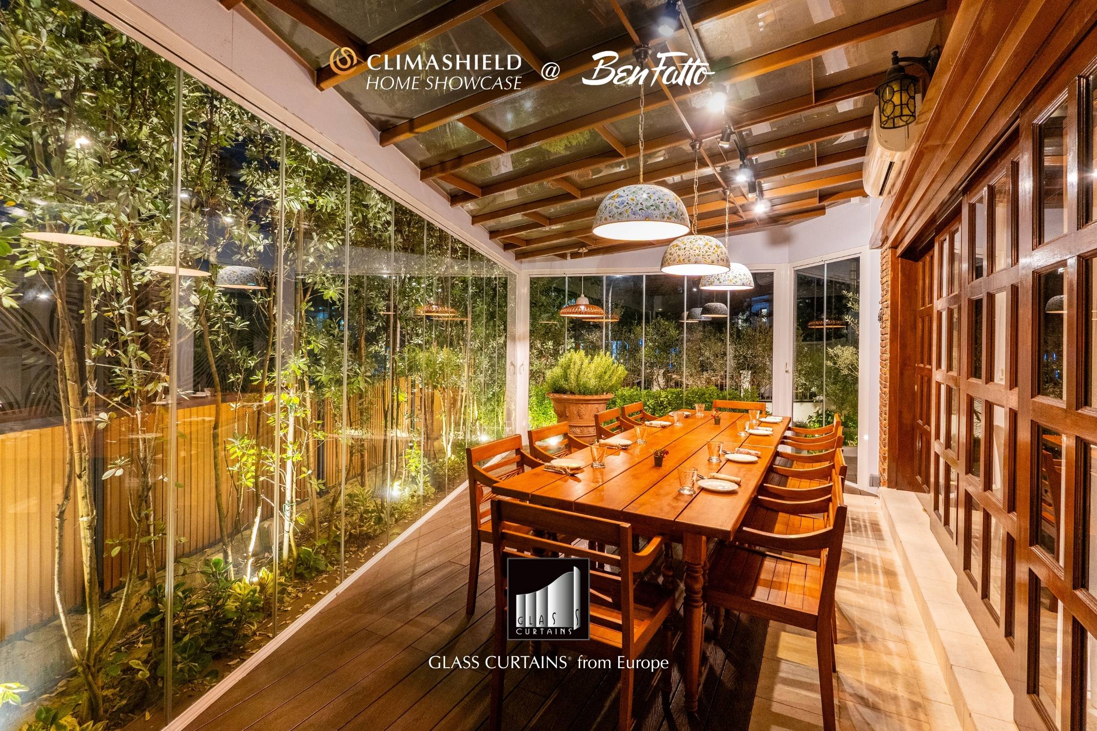 The Glass Curtains® system transforms Ben Fatto’s alfresco area into a versatile indoor-outdoor dining space, giving guests the best of both worlds. Rain or shine, diners can enjoy the beauty of the outdoors while staying cool and protected from inclement weather, insects, and pests—allowing the restaurant to focus on creating memorable experiences.